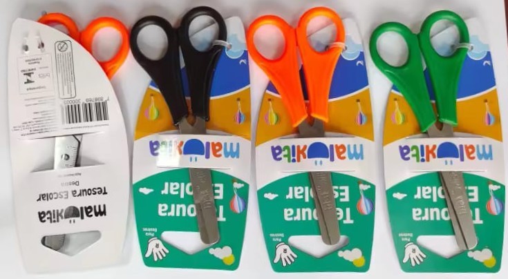Tesoura escolar inox com cabo plástico para destro Malukita